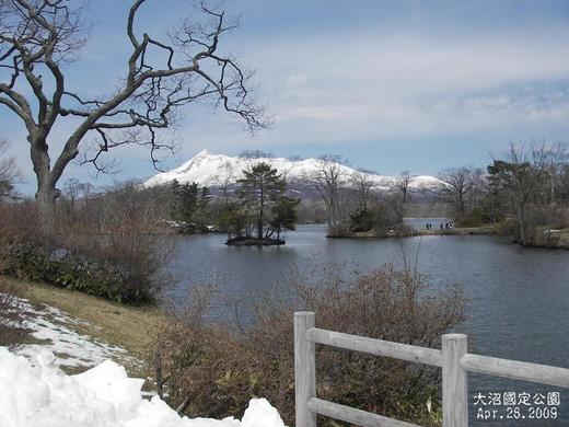 大沼公園的獨特景色:山岳雪景,湖泊遼闊,陽光露臉積雪將退,好一個迷人的北國初春景色。