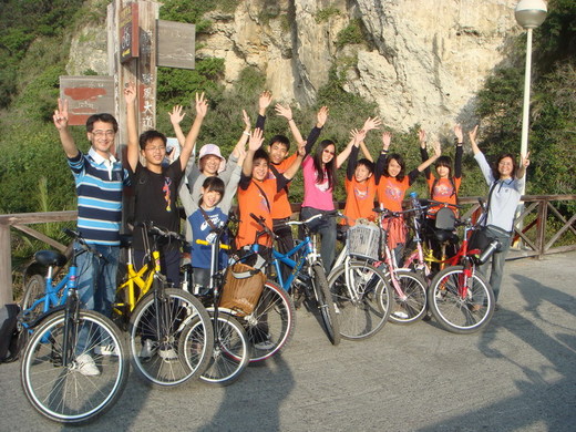 這次參加的人應該是我們6個,帶著小加是因為小力爸媽上班所以就讓她跟了(反正她是乖小孩)而長腿柔姐姐是突然出現的,我們措手不及,只好讓她跟了,阿飛媽是我們老師當然要去。蟲爸是我們3年來的專屬照相師,他去我們才能專心玩不用管拍照,大恩媽是我們保鏢,一行11人,出發囉! 高雄捷運的大優待是:國小學生一日遊捷運不限次數只要40元--這真是我們畢業前的好消息! 這次,我們打算搭火車到橋頭--搭高捷到凹仔底站--搭公車到高美館--再搭捷運到西子灣--搭渡輪到旗津--租腳踏車--回程。*5種交通工具都使用到了,假如是和爸媽的話一定是開車一種。帥! 感想是:區間車速度慢,但可以看風景。高捷又寬又快又乾淨,讚!公車嘛--司機人很好又很好客,但是追車子是要練功夫的,我們失敗了2次(因為其他乘客都不排隊,我們排成一列都上不去,後來第3輛來的時候,蟲爸和阿飛媽用小跑步追車&卡在門邊,我們才全部擠上去)總共花了35分鐘等車坐車7分鐘。渡輪很晃但風很涼,我們都是第一次搭,興奮極了,只是等待下船開艙門時,摩托車集體發動的臭氣真讓人有嘔吐感......腳踏車當然是飆阿飆的酷。回家雙腿無力時,超快的自強號真是救星![]()