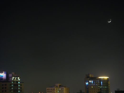 昨晚,我們電話串聯,一起站在陽台看金星和月亮。