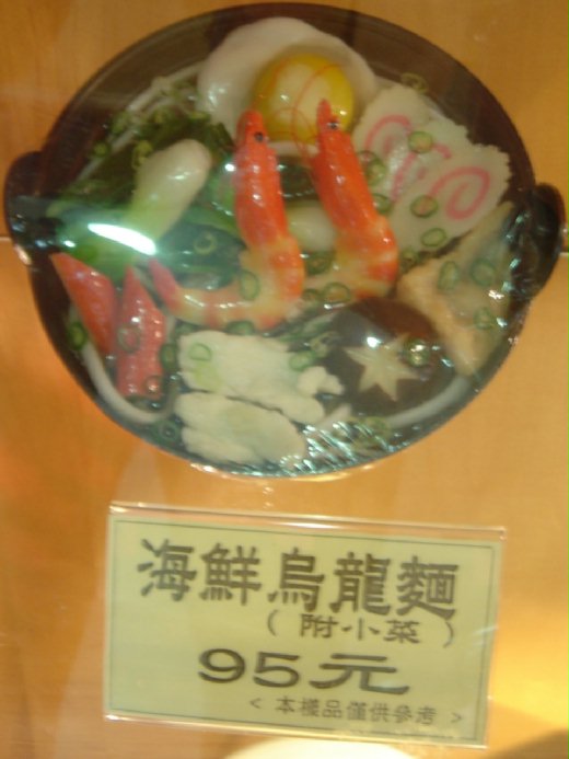 現在很多醫院的地下室都兼做美食街,方便住院病人和訪客解決食的問題。美食街裡攤位的櫥窗上,總是會擺一些裝飾得令人唾涎的美食模型,但按圖點菜,常常端出來的實品,有著天南地北的差異,就像是這碗海鮮烏龍麵。
