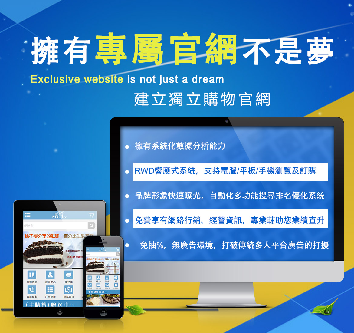 ☑網頁設計自由且可隨時改店面外觀