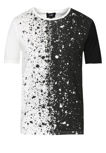 Keeping it casually cool, this tee from Flesh Imp features colour blocking accents paired with splattered paint print design for a dash of youthful exuberance.