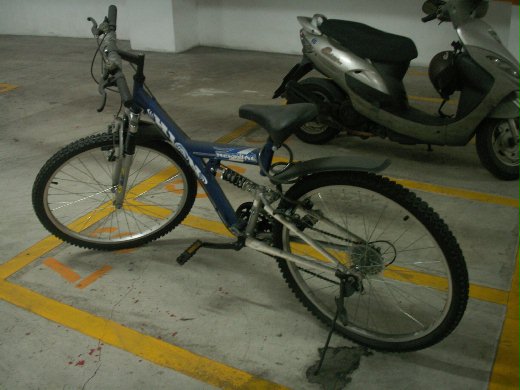 (這輛被灰塵蒙蔽的腳踏車,在地下室一待就三年多。拍照時,才發現左鄰右舍也有好多這樣的腳踏車,莫非,這也是其他住戶一時『衝動』的下場?)