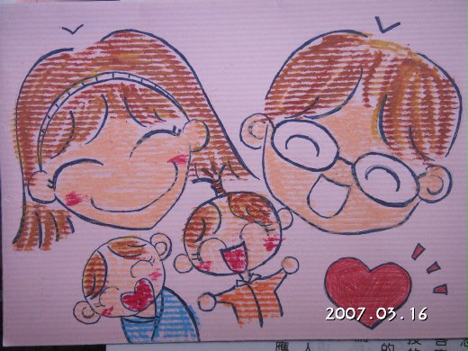 (這是元培實習小護士送給二馬家族的小卡片。小蘭子到現在還珍藏著。說真的,她畫得還真像!)