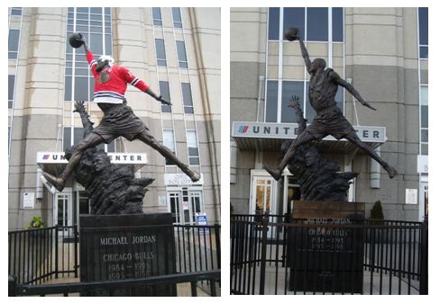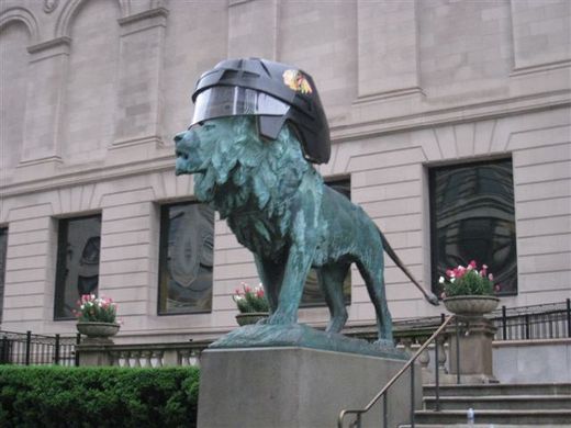 2010年的六月, 全美職業曲棍球大賽. 芝加哥的黑鷹隊Blackhawks在沉寂了49年後, 終於又登上了全美冠軍的寶座. 在play-off 期間, 全市熱烈為他們加油, 喬登在聯航前的銅像, 也穿上了Blackhawks的球衣球帽, 藝術博物館前的獅子, 也逃不掉要帶個球帽, 市府前的地標"畢加索"更是要支援一下了.