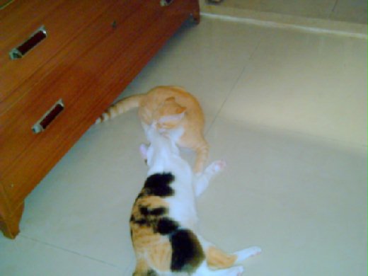 小橘子只要吸到奶頭,就乖乖的躺在小ㄧ身邊,又幫小ㄧ洗臉還幫她掏耳屎,一副姐妹感情好的樣子,但只要小ㄧ不給她吸,馬上貓拳揮來揮去,上演全武行。