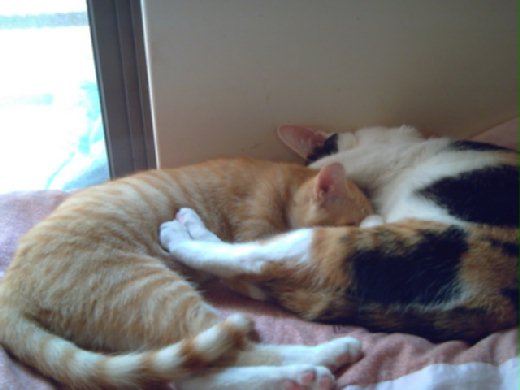 小ㄧ應該很殘念吧,奶頭明明是自己的,卻還要分給小橘子吸兩口。人家小ㄧ還不想這麼早當媽呢!