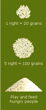 每答對一題, FREE RICE網站 就捐20g的米給 聯合國世界糧食計劃署(WFP)