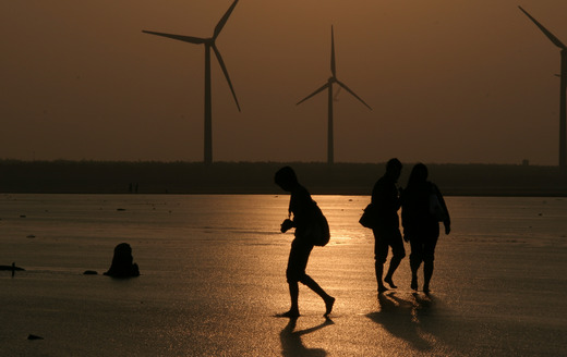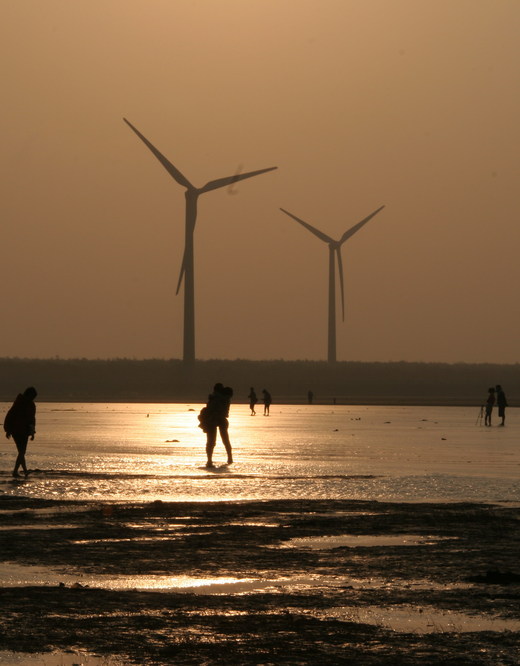 一直寄望 能在這裡 完成一個完美的驚嘆號!! 送給同學們一個浪漫又美麗的天使之地 可惜 有點來ㄉ時機不對 很冷 初冬的氣溫 應該是要還能忍受ㄉ 可是 今天 卻感覺 好冷 是被眼前的風景給冷到了吧 真ㄉ心理 又是 忍不住聲聲不斷ㄉ不優 不優 怎ㄇ都這樣 今天 是怎ㄇㄌ 非要這樣來一下ㄇ 大家 又是一陣ㄉ沉默 只聽到 阿~~只有這樣喔 沒有了喔 那要做甚ㄇ勒 怎ㄇ甚ㄇ都沒有?? 我知道 慘了 不能交代了 只能 心虛的跟大家說:有阿!就還是有阿 有風車 有人 ㄝ可以勇敢ㄉ下海去挑戰 剪影之美阿 還有招朝蟹 水面上ㄉ影子 當然 等太陽下山阿 !! 真ㄉ 才說完 覺ㄉ心更虛 因為 怕太陽不賞臉 灰灰ㄉ天空不作美 把下山前ㄉ~紅暈~給完完全全ㄉ擋下 不給你看就真ㄉ糟ㄌ~~