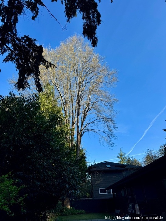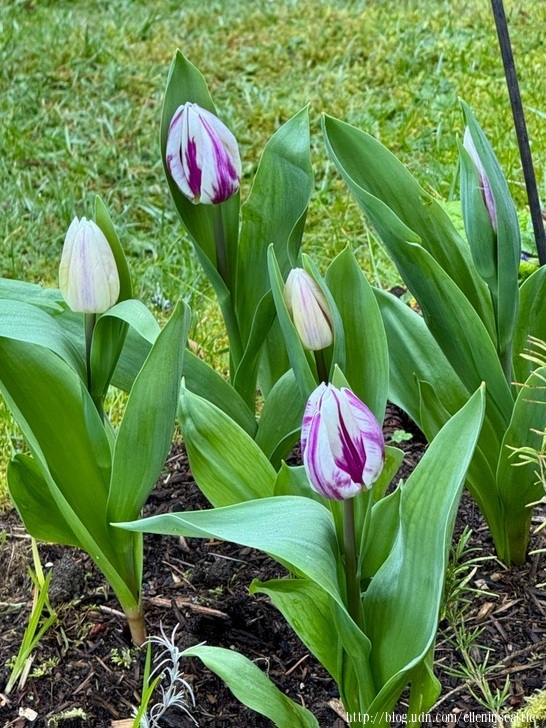 先花後葉,嫩綠的葉子提醒著花瓣