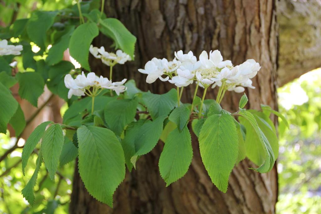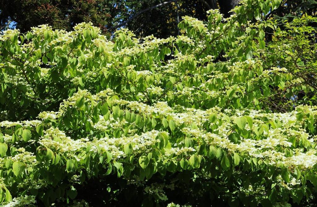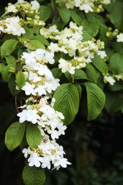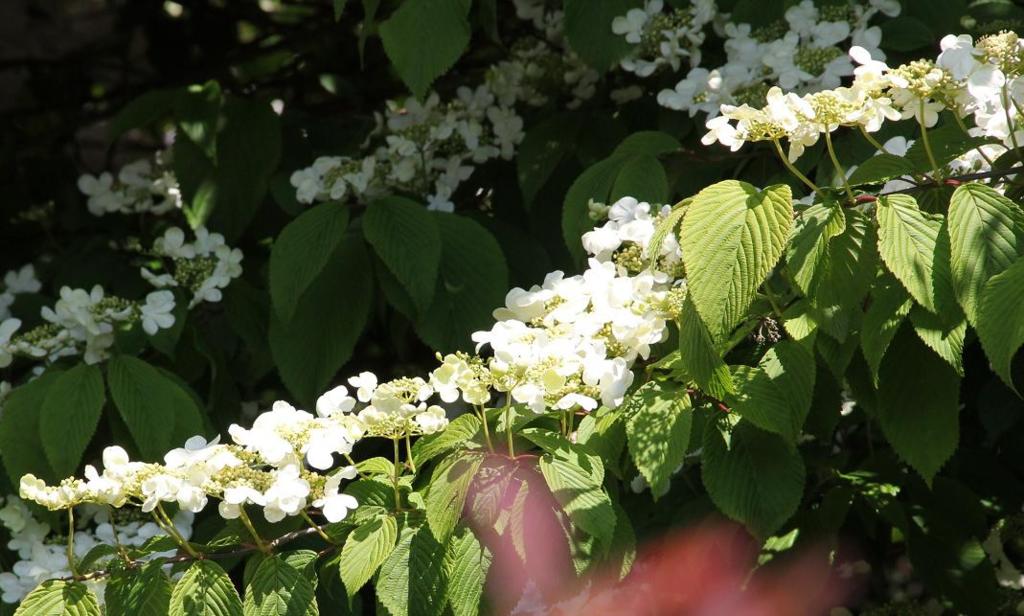 在我家附近的住家庭院或市立公園中﹐早在初春就見到繡球花開放﹐只是品種不同﹐它們有的屬爬牆類﹑有的屬蔓藤類﹐大多是白色﹐花型也不太一樣。但是它們一大片一大片地開出來也不容人忽視。與台灣常見的華八仙同屬 hydrangea 家族﹐但花瓣和葉子都不相同。