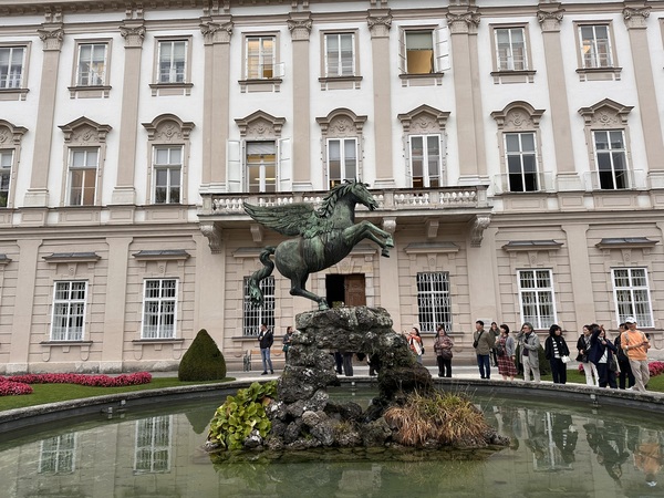 電影《真善美the sound of music》電影中茱莉亞安德魯斯飾演的瑪麗亞就是在此地帶著七個小孩圍繞著飛馬噴泉在花園中歌舞,唱出膾炙人口的Do Re Mi一曲。