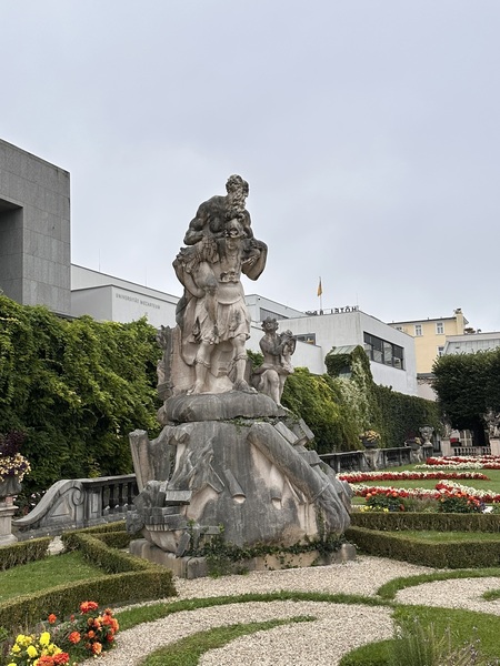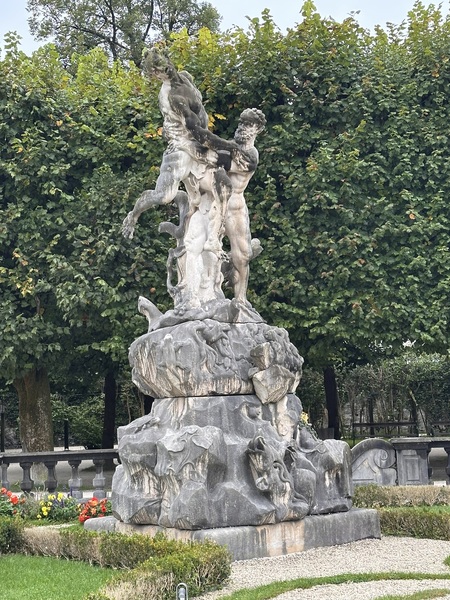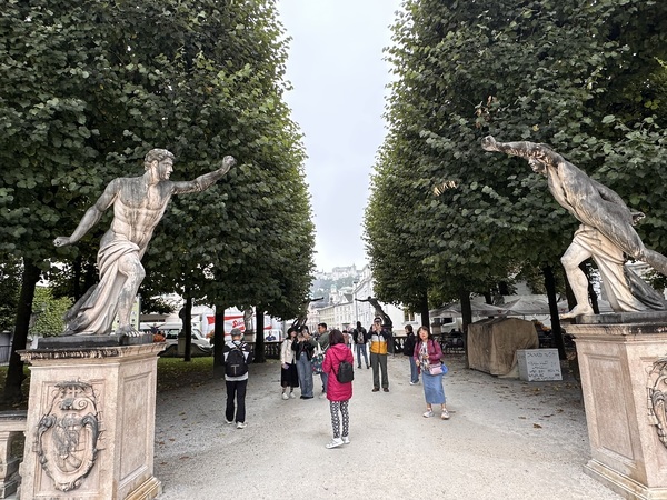 米拉貝爾花園入口處由一對角鬥士充滿力與美的肢體形成門拱,這裡也是電影《真善美the sound of music》的場景之一