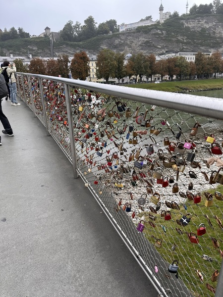 卡拉揚家右轉就是通往舊城區的馬卡特橋,馬卡特橋橫跨薩爾察赫河(Salzach)上,橋上被遊客鎖滿愛情鎖
