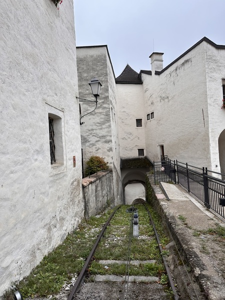 步行的終點,是搭乘纜車上山頂城堡。1892年啟用時昔日蒸汽驅動,後改電力。城堡內有宮殿、軍事設施與博物館