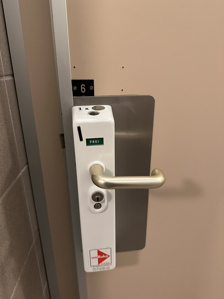 逛一逛突然內急,使用「flush app」快速找到廁所,需付一歐元,投錢後才能開門。