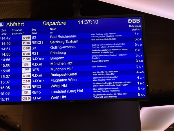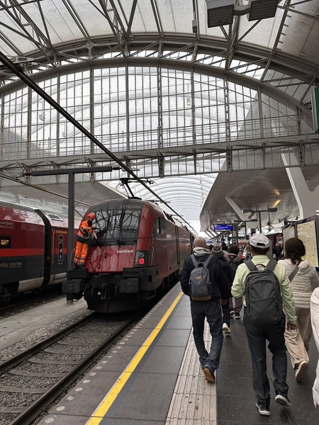 集合後我們搭公車來到薩爾茲堡火車站,要搭高速火車前往維也納。