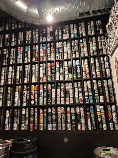 這家店內牆面上滿滿的世界各地啤酒罐的裝飾,我也找到了台灣的金牌啤酒罐。