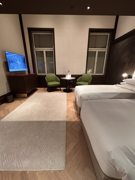 晚餐後抵達在維也納這三晚的旅館Almanac Palais Vienna,進去被裡面的華麗感震懾到,聽說這裡是以前貴族的宅邸,難怪這麼貴氣