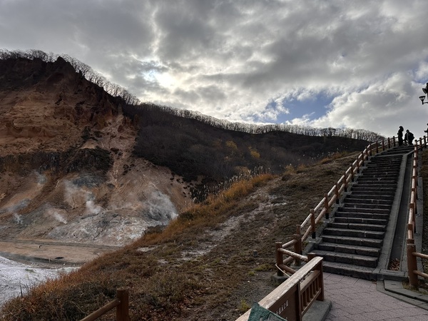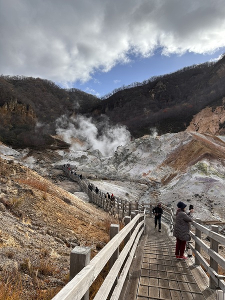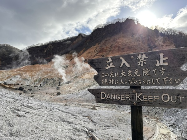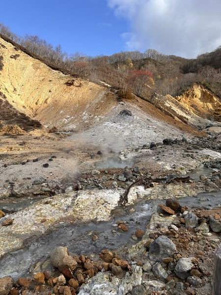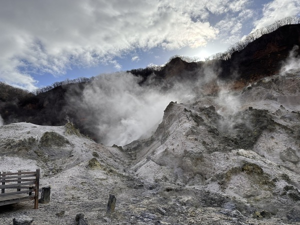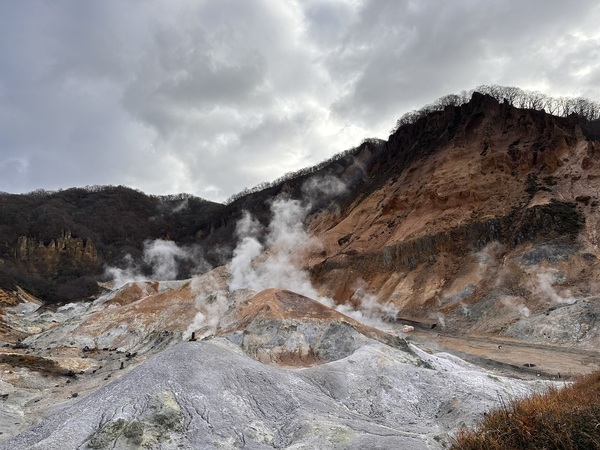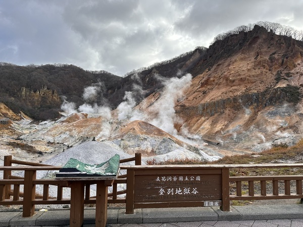 【登別地獄谷】「地獄谷」是日和山火山噴發時形成的爆裂火口遺跡。這座直徑450公尺、面積約11公頃的山谷至今仍相當活躍,是登別溫泉的源泉之一,每天湧泉量高達1萬噸。