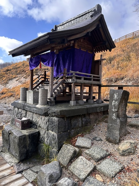 藥師如來堂:文久元年(1861年),據說當時開採硫磺的南部藩家臣,用佛堂下湧出的溫泉水清洗眼睛後,眼疾因而痊癒。佛堂內放置著家臣做為謝禮而捐贈的石碑,溫泉被稱為「目之湯」,深受眾人喜愛。
