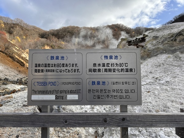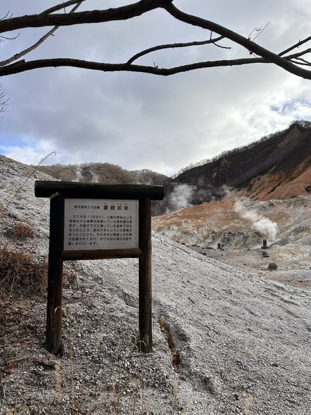 裸露的岩石表面上有多個溫泉湧出口和噴氣孔,曾經噴發點就會立碑。白煙竄升的場景獲得了「鬼怪棲息的地獄」的綽號。