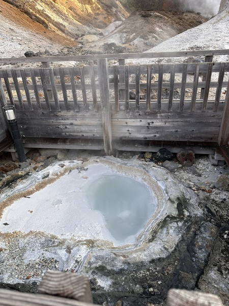 附近設有步道,步行一圈約20分鐘,沿著步道可近距離觀看源泉噴湧和溫泉竄流的模樣。