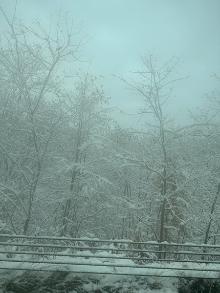 離開登別地獄谷前往午餐餐廳路上看到路邊開始積雪