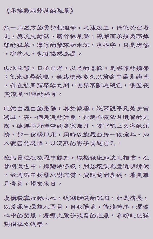 承接幾兩掉落的孤單