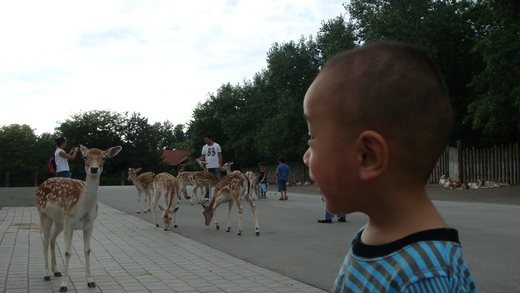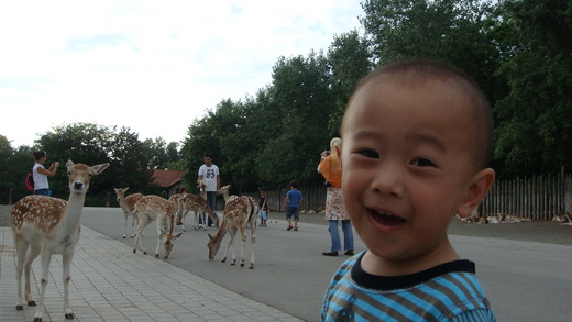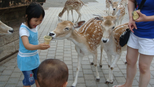大姑姑買了餵鹿ㄉ飼料 鹿看到了飼料一下子全跑了過來 嚇死大眼妹了