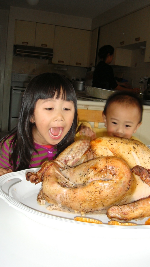 今天是感恩節 所以要吃火雞 好大一隻唷~我們買最小隻ㄉ 但看起來很大ㄝ~