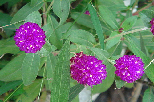 | ‧花: | 花頂生於枝條先端,每個球狀花由數十至上百朵小花組成,花徑約2公分。苞片似紙質,可製乾燥花,花期特長,生性極強健,為不可多得之美麗草花。 |
