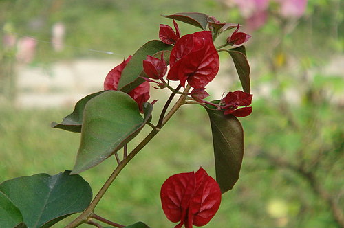 | 九重葛的用途 ◎ 1 適合於庭園、盆栽及陽台栽植; 2 莖具有蔓、舉凡綠籬、花棚、花廊、綠柱、盆栽盆景及綠門等很適用。
