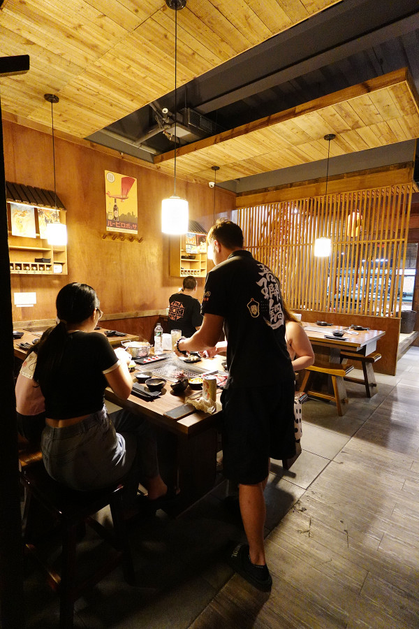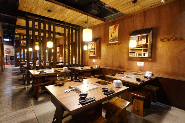 一燒十味昭和園林口店裝潢完全走日式居酒屋路線,原木色外牆搭配最新菜單的布條,遠遠就能看到,氣氛直接拉滿。光是在外頭經過就會忍不住多看幾眼,乍看下會有一種「啊這間一定不便宜吧」的感覺,但實際上價格卻很親民。