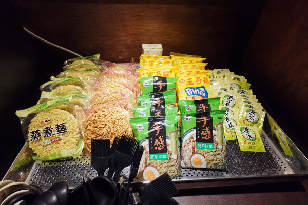 自助吧還有無糖綠茶茶包、蒸煮麵、雞汁麵、菠菜拉麵,如果想要喝無糖熱飲 或者吃鮮麵食的朋友都可以在這邊自由取用。