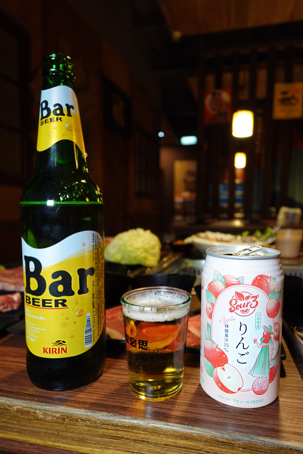 酒水部分真的很爽!從999方案開始就有瓶裝酒水喝到飽,包含金牌、Sapporo、Bar Beer三種啤酒直接無限暢飲。升級到1199,更是進入「酒鬼天堂」,除了啤酒之外,還多了蘋果、白桃、梅果、柚子四種水果酒,喝起來清爽帶甜,非常適合配燒肉解膩。