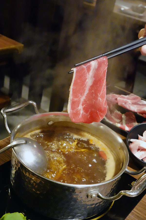 基本的火鍋湯底是原味,但只要加價149元,就可以升級成麻辣湯、藥膳元氣湯或養生黑蜆湯。