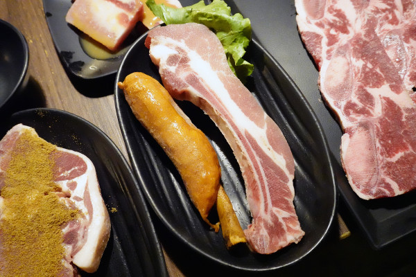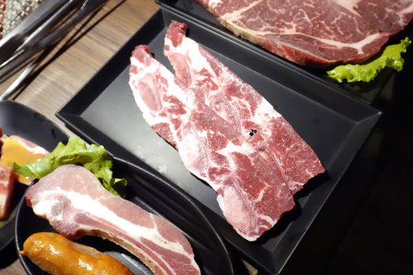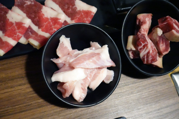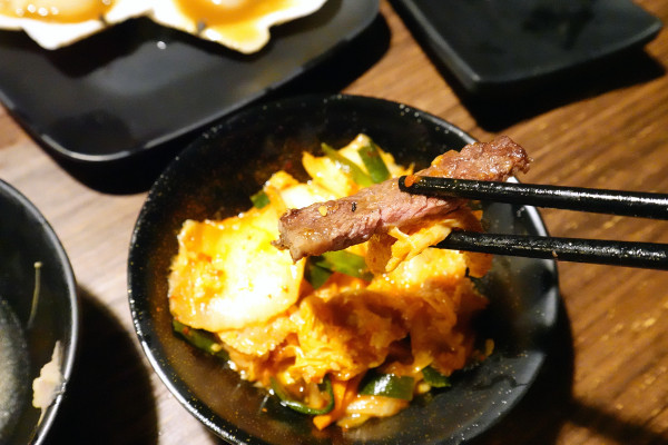 韓式泡菜則是另一種層次,酸辣開胃又帶點發酵的香氣。烤肉片油香滿滿,配上一口泡菜,整個味道變得有衝擊力,辣度把肉的甜味逼出來,吃起來超過癮。尤其是配培根牛或松阪豬,會有一種韓式烤肉店的錯覺。
