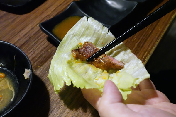 高麗菜葉就是清爽派的代表,鮮脆多汁,一片大葉子包著燒肉、再加一點醬料或蒜片,咬下去爽脆感直接中和掉肉的油膩,反而更耐吃。尤其大口咬下去的時候,那種清脆聲響,根本就像吃生菜堡一樣療癒。