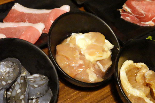 梅花豬一上桌就覺得油花分布漂亮,入口是那種剛剛好的嫩感,涮進藥膳養生湯會多一股淡淡中藥香,烤起來則是外層微焦香、裡面保有彈性。