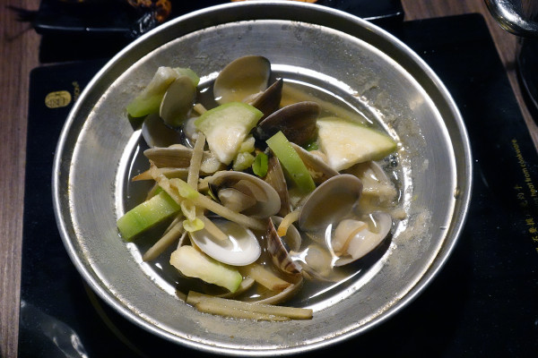 絲瓜蛤蠣是燒烤界的清流,加熱後,蛤蠣會慢慢打開,絲瓜也會從硬變軟,最後融進湯汁裡。煮好後海鮮的鮮甜和絲瓜的清甜完美融合在一起,整個湯頭超鮮美!夾一塊絲瓜吃,因為煮過之後變得超級軟,幾乎是用舌頭一頂就化開,而且吸飽了湯汁,每一口都是滿滿的精華。最後再夾一顆蛤蠣,肉質超級Q彈,鮮甜度直接爆表!