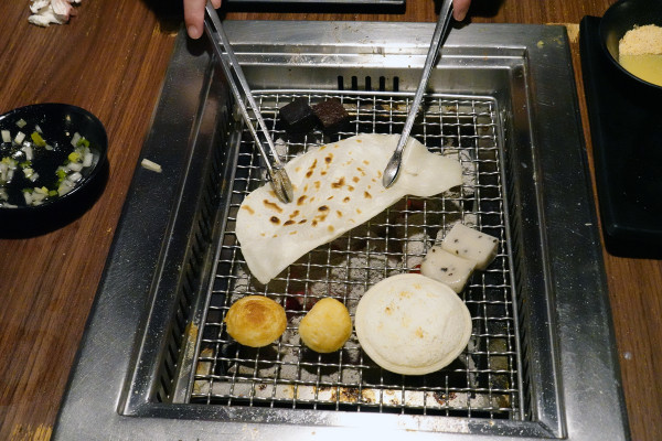 他們的小品用白鐵盤裝,可直接放在烤爐旁邊的電磁爐上煮,整個感覺就很專業,而且完全不會影響烤肉的進度。