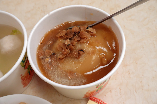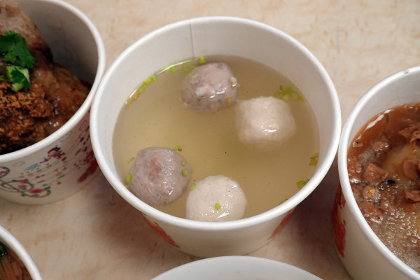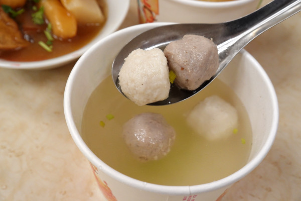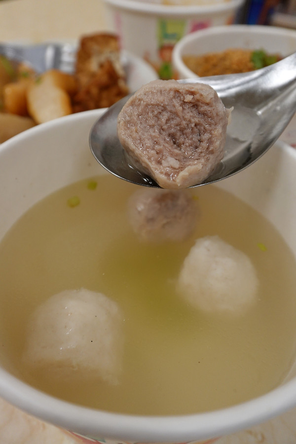 兩種丸子都很有咬勁,讓你不會覺得單調。用這碗清爽的湯來配旁邊的重口味小吃,根本就是完美的解膩組合!