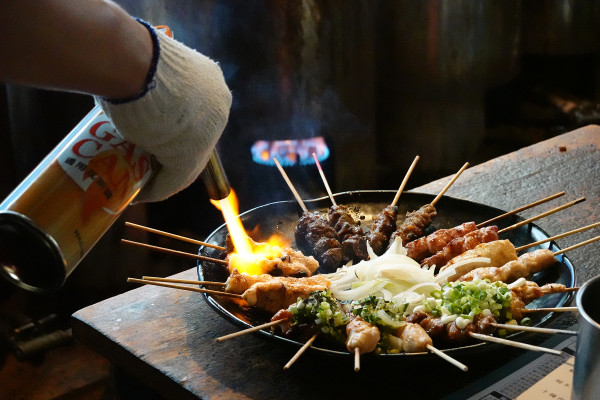 豬血糕刷上獨門烤醬後烤得外酥內Q、甜鹹夠味,是很台式的居酒屋小點。
