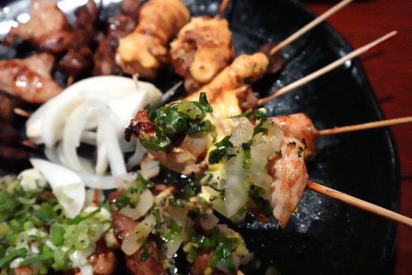 鹽蔥豬肉串、雞肉串超經典!鹹香夠味的鹽蔥醬鋪在烤好的肉上,蔥的清爽和肉的油脂完美融合,超開胃!