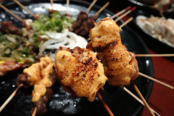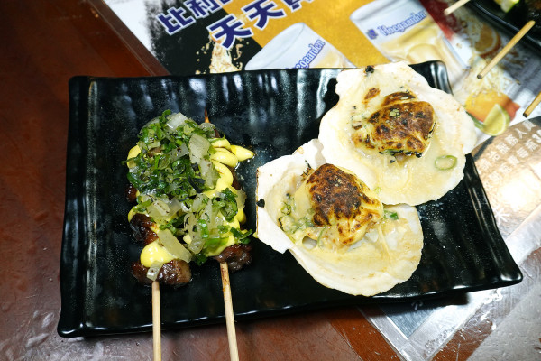 明太子牛肉串、雞肉串:這個就是日式居酒屋的靈魂!牛肉和雞肉上面鋪了一層厚厚的明太子醬,鹹鮮味美,魚卵的顆粒感讓口感更豐富,是女生會超喜歡的夢幻逸品!