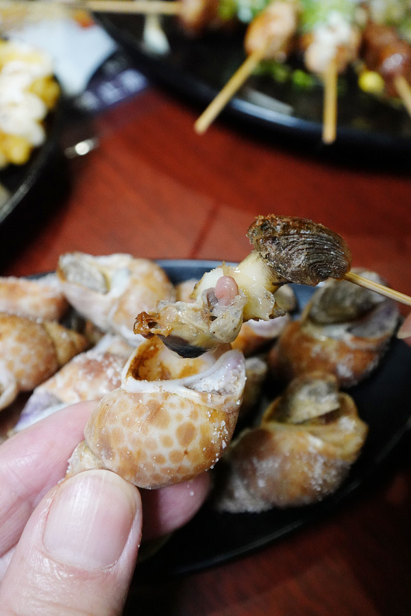 用牙籤挑出來的螺肉Q彈有嚼勁,充滿大海的鹹鮮味,烤得鹹香的滋味讓人招迷,超適合邊聊天邊慢慢嗑。