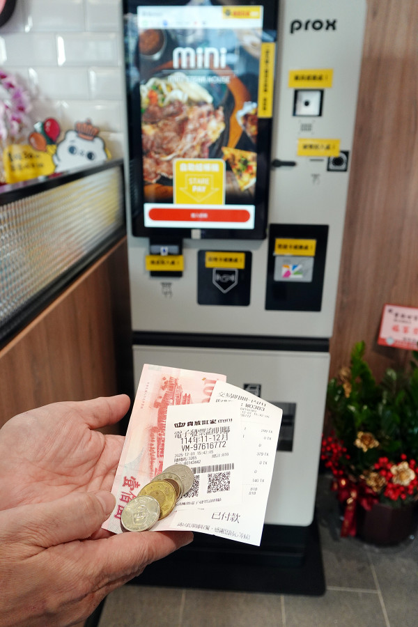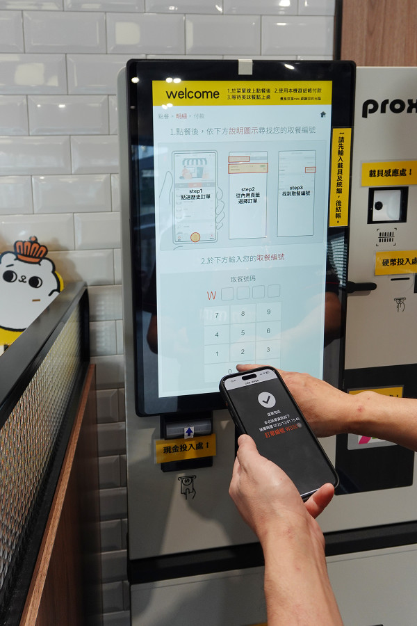 要點好餐一定要先到櫃檯旁的機器結帳,輸入手機4位數號碼,然後選擇你要用現金、刷卡、Apple Pay還是悠遊卡付款,結帳過程其實不難,但付完錢後餐點才會開始製作主餐喔!
