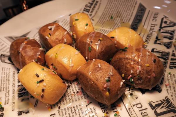我們第一輪吃到炸小香腸、炸饅頭加煉乳、炸小熱狗、炸地瓜球、炸薯條和雞塊,後來的日式炸豆腐也超讚!