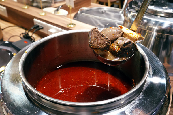 那個麻辣鴨血煮得超級入味,而且非常軟嫩滑Q,一口咬下去,完全不會有那種硬硬或粉粉的奇怪口感,而是像布丁一樣在嘴裡彈跳!